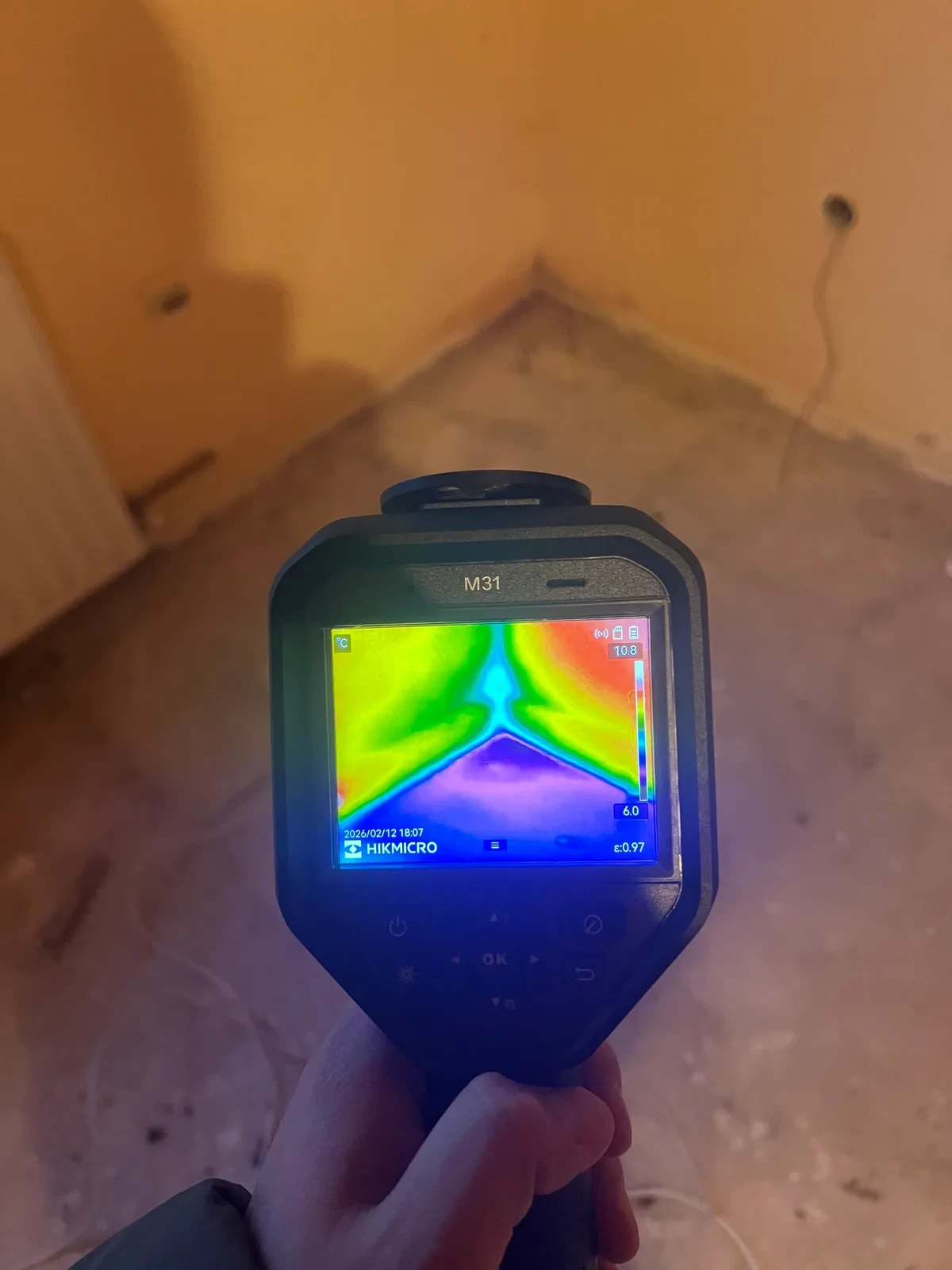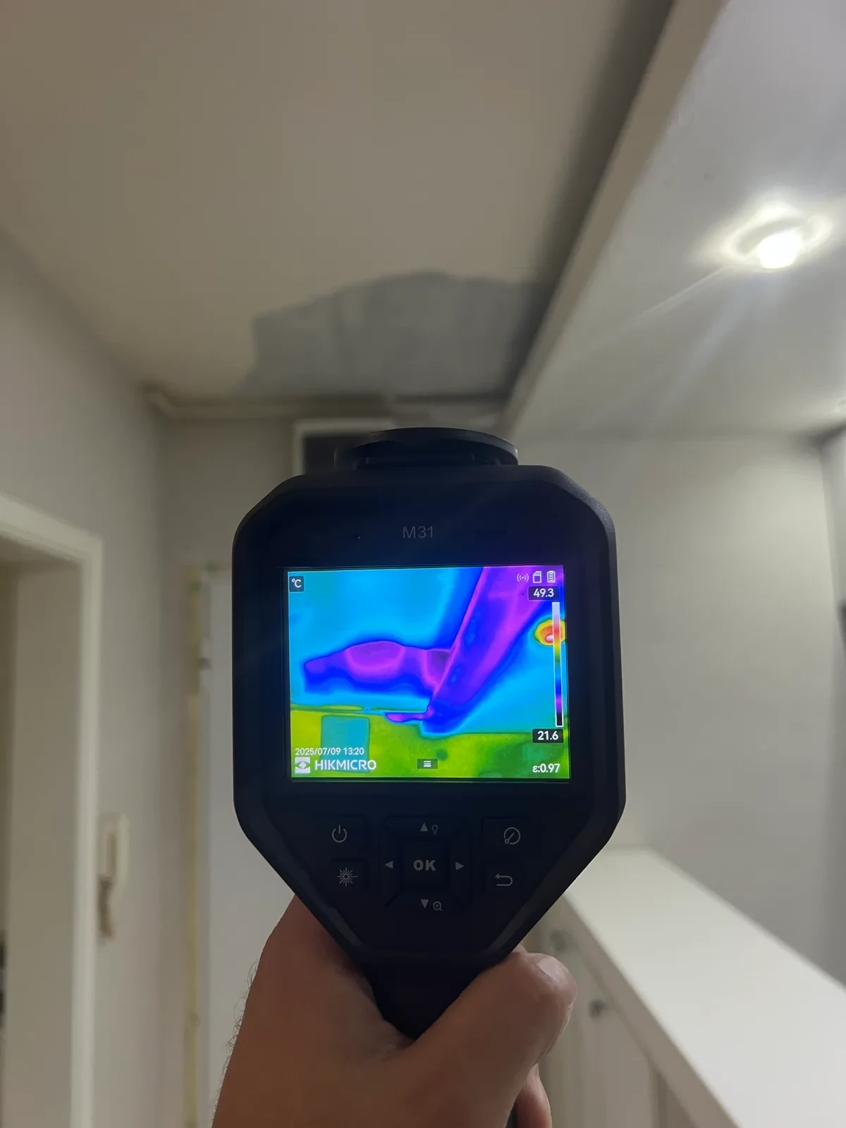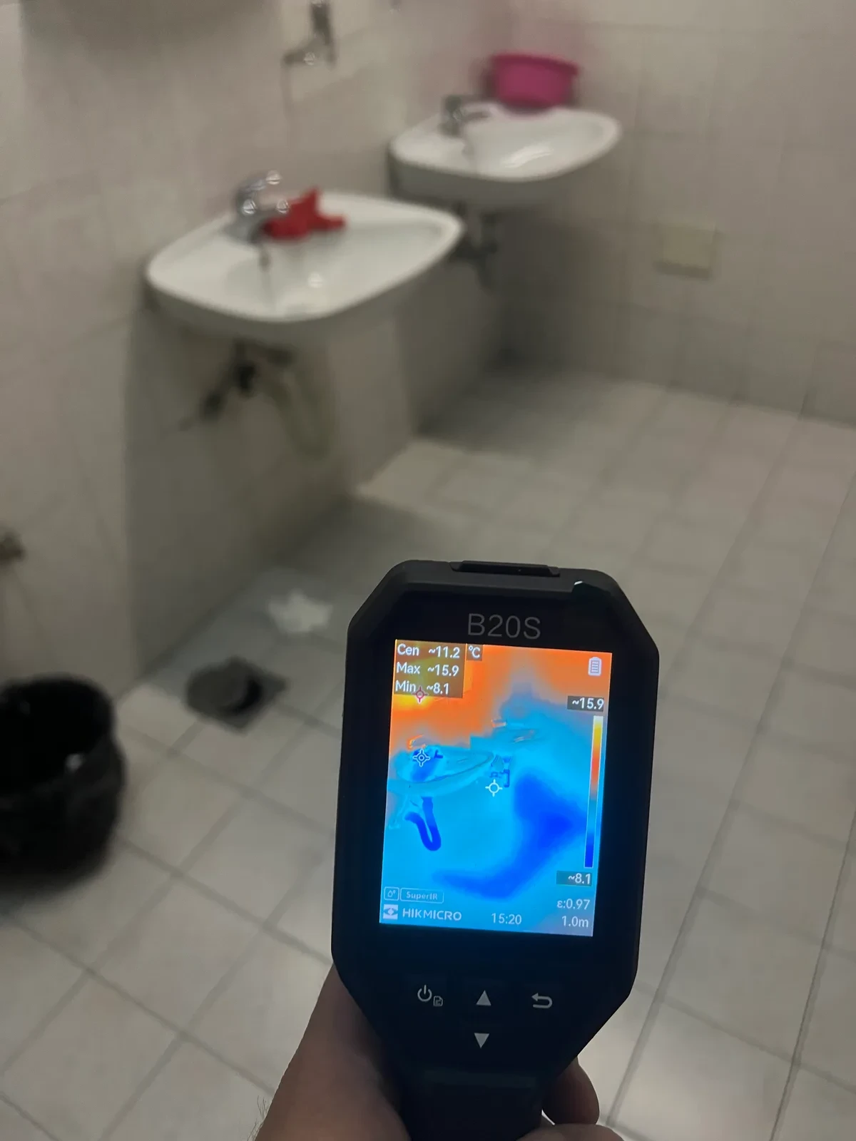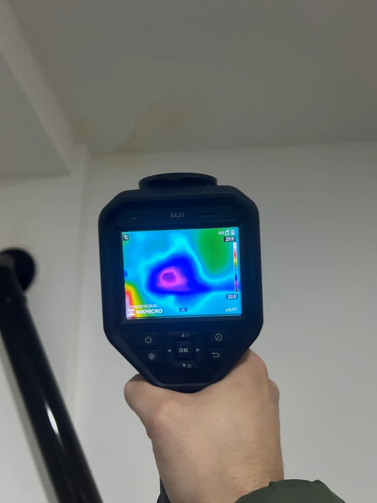 Termovizijskom kamerom pratimo temperaturnu razliku između mokrog i suvog materijala, jasno vidljivo čak i kroz debele zidove. Posebnu pažnju posvećujemo detektovanju puknutih cevi koje se skrivaju iza pločica, gipsa ili betona.